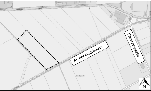 Das Plangebiet des Flächennutzungsplanes liegt südlich der „Ölwerkstraße“ (K 233) und nördlich der Gemeindestraße „An der Moorbeeke“. Der Geltungsbereich des Flächennutzungsplanes ergibt sich aus dem nachstehenden Kartenausschnitt (Quelle: Auszug aus den Geobasisdaten der Niedersächsischen Vermessungs- und Katasterverwaltung © 2025 ).