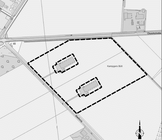 Das Plangebiet liegt südlich der „Ölwerkstraße“ und östlich der Straße „Siedlung“. (Quelle: Auszug aus den Geobasisdaten der Niedersächsischen Vermessungs- und Katasterverwaltung © 2022 ):