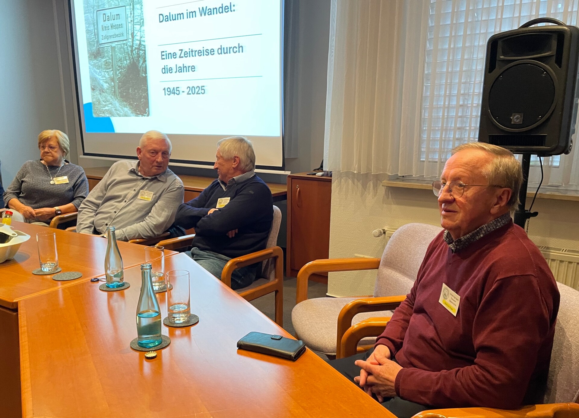 Ein stetes, zustimmendes Murmeln im Publikum zeigte, dass viele Zuhörer eigene Erinnerungen wachriefen und die gemeinsame Zeitreise durch Dalums Geschichte sichtlich genossen. Manche Zuhörende nutzten die Gelegenheit, eigene Erinnerungen und Anekdoten beizusteuern, was den Vortrag lebendig und persönlich machte. So wurde deutlich, dass Dalum trotz seiner ländlichen Prägung einem stetigen Wandel unterliegt und jede Generation ihr eigenes Kapitel zur Dorfgeschichte beiträgt.