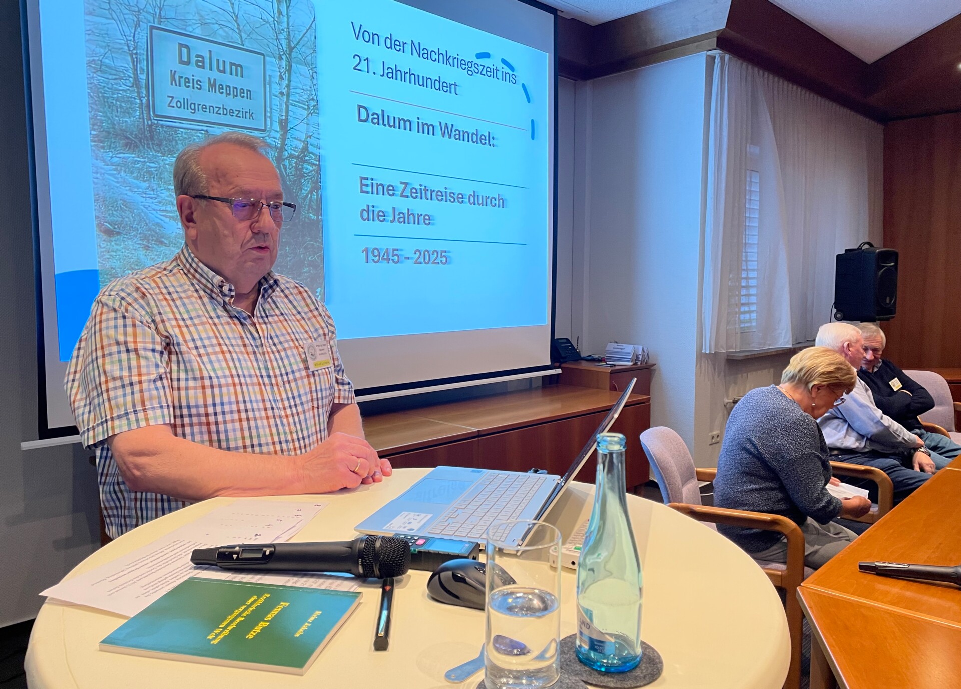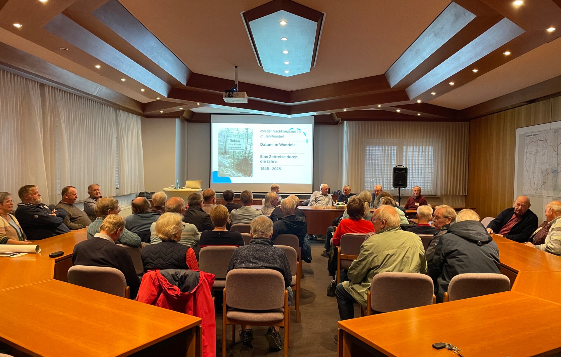 Rund 70 Besucherinnen und Besucher folgten am 7. Oktober der Einladung der Gemeinde Geeste zu einem weiteren Vortrag der Jubiläumsreihe „1.025 Jahre Ersterwähnung der Orte Dalum und Hesepe“. Im Ratssaal berichtete der Arbeitskreis Dalumer Geschichte über die Veränderungen im Ortskern von Dalum seit 1945 und führte das Publikum mit zahlreichen, teils kolorierten Fotografien auf eine eindrucksvolle Zeitreise durch die jüngere Ortsgeschichte.