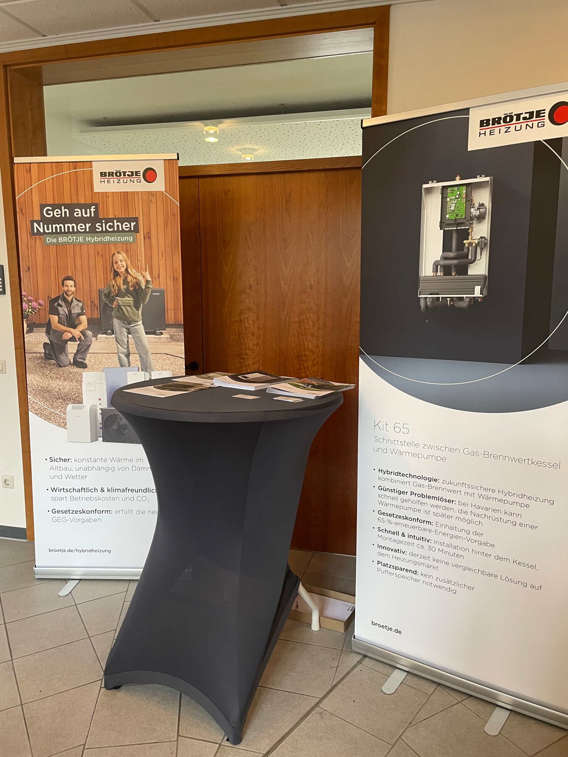 Parallel bot der Infomarkt im Foyer die Möglichkeit zum direkten Austausch mit Fachfirmen wie EMS Suncontrol, Engelbertz Haustechnik und Brötje Heizung. Bei Kaffee und Gesprächen konnten sich die Besucherinnen und Besucher individuell beraten lassen, Fragen klären und sich über Lösungen für die eigenen vier Wände informieren.