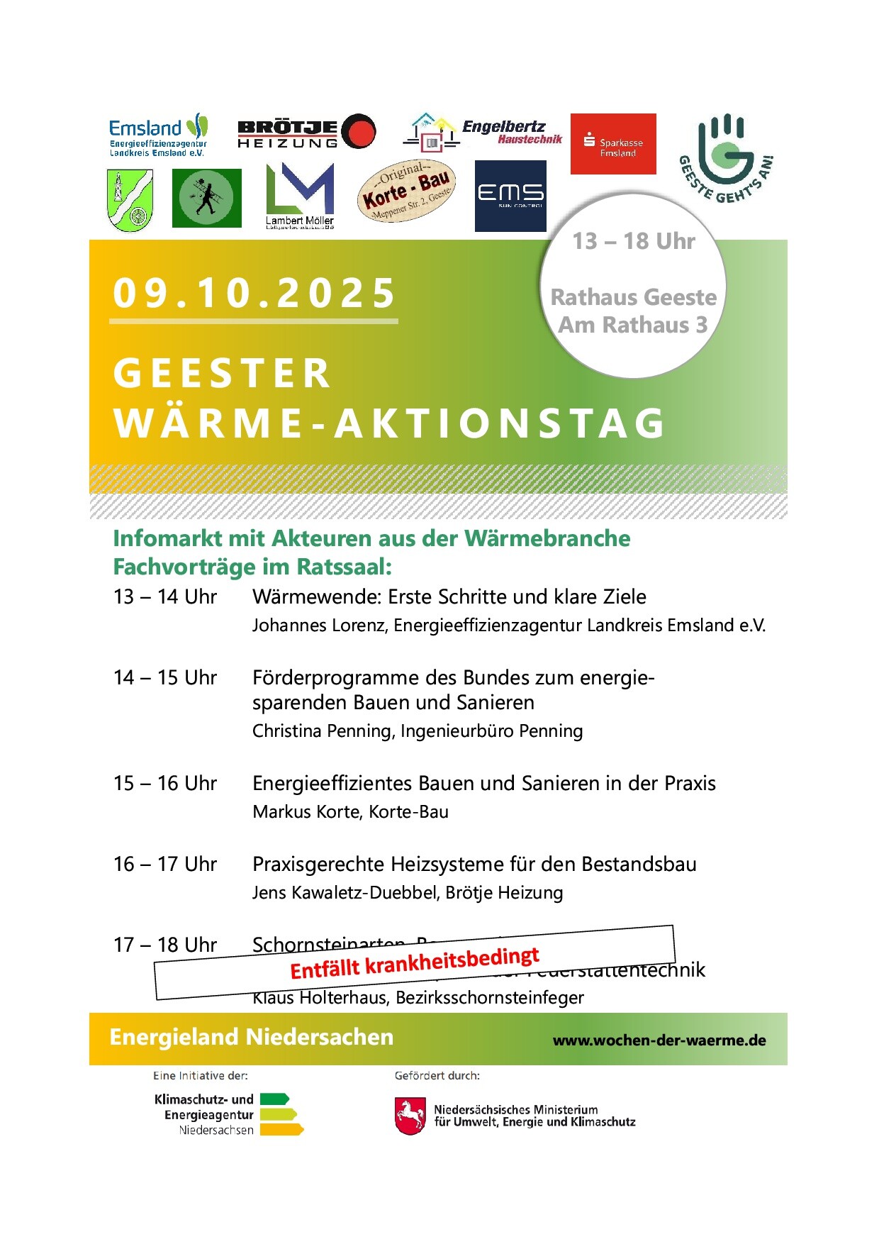 Die Gemeinde Geeste bedankt sich bei allen Beteiligten und plant, auch in Zukunft praxisnahe Veranstaltungen rund um das Thema klimafreundliches Heizen anzubieten.