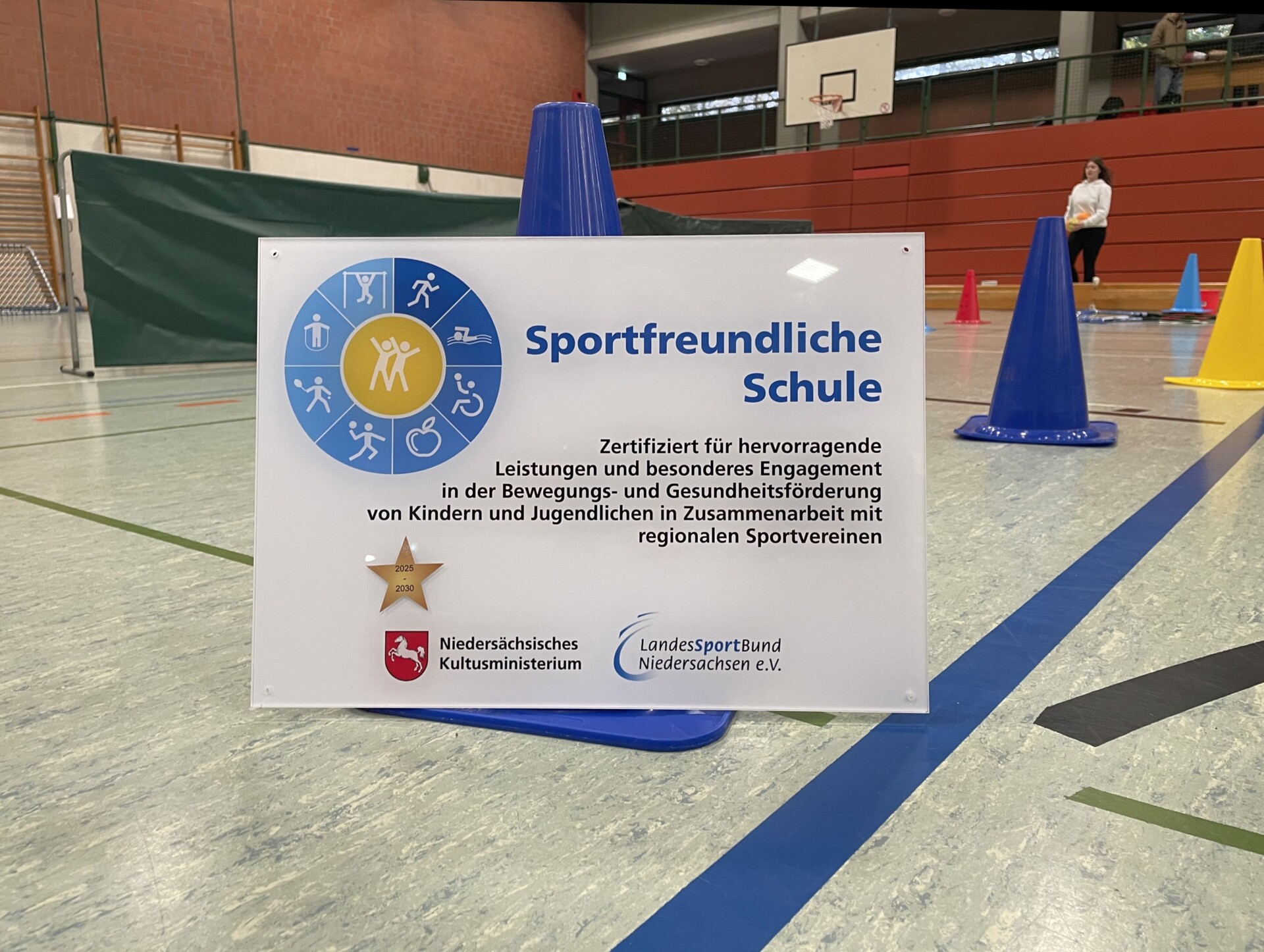 Mit großer Freude und spürbarem Stolz nahm die Geschwister-Scholl-Schule, Oberschule der Gemeinde Geeste, Ende November zum zweiten Mal die Landesauszeichnung „Sportfreundliche Schule“ entgegen. Bereits im Jahr 2016 war die Schule für ihr besonderes Engagement im Bereich Bewegung, Sport und Gesundheitsförderung gewürdigt worden – nun bestätigt die erneute Zertifizierung eindrucksvoll die kontinuierliche Weiterentwicklung des sportpädagogischen Profils.