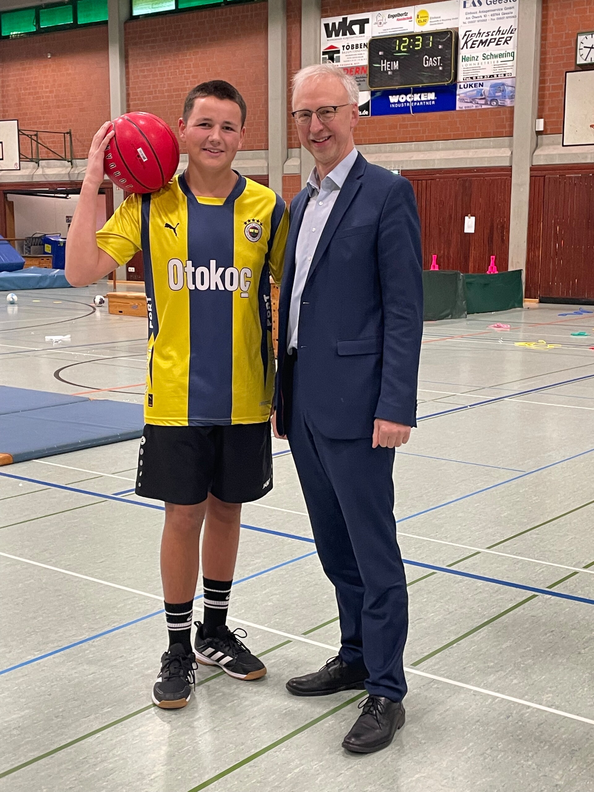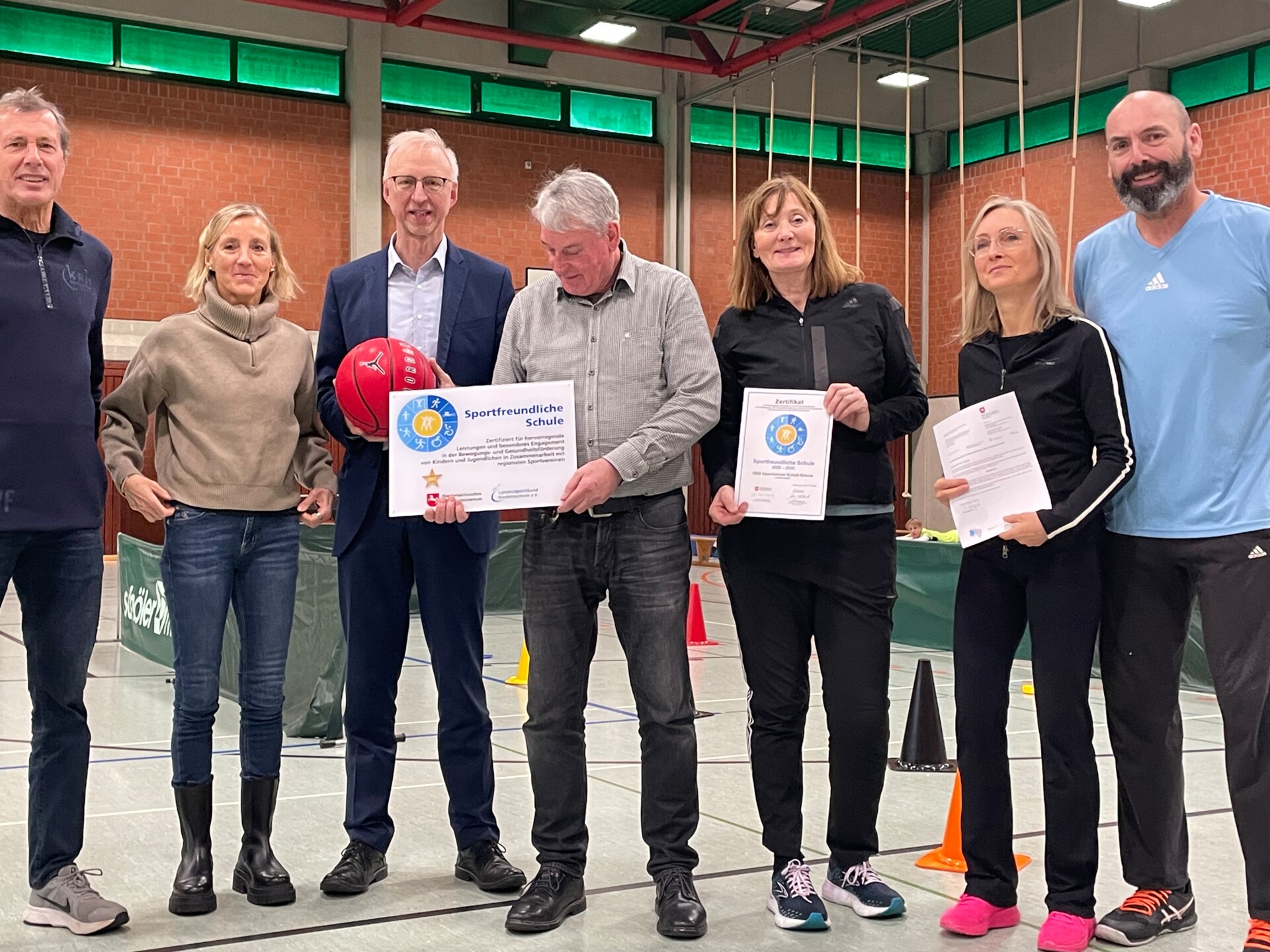 Auch Bürgermeister Helmut Höke würdigte das Engagement der Schule. Er betonte, wie wichtig Bewegung, Teamgeist und sportliche Vielfalt für die Entwicklung junger Menschen seien. Die Auszeichnung, so der Bürgermeister, sei ein sichtbarer Ausdruck dieses Einsatzes. Als symbolisches Geschenk überreichte er den Schülerinnen und Schülern einen Basketball – stellvertretend für die vielen sportlichen Aktivitäten, die das Schulleben prägen.