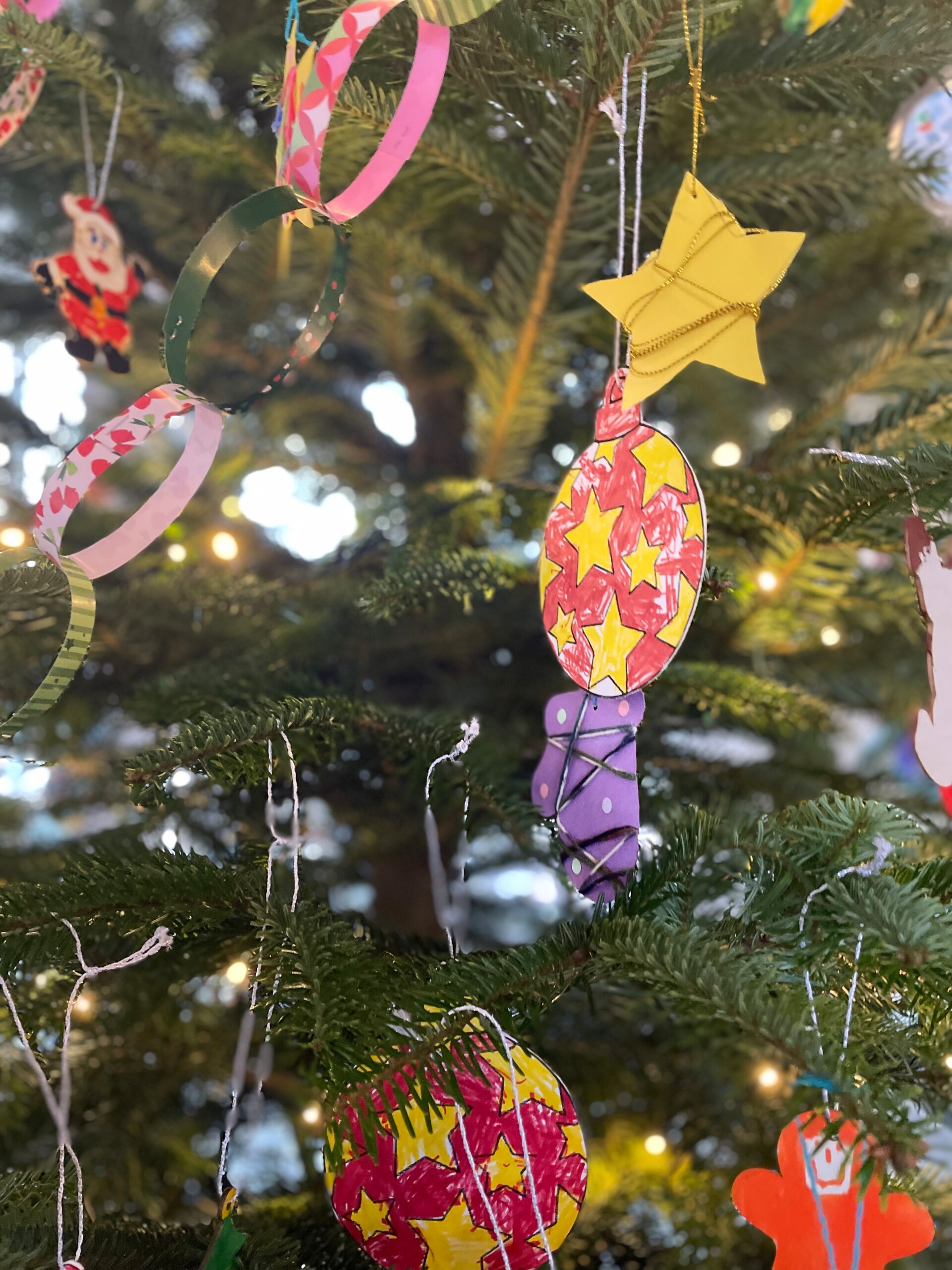 Die Kinder brachten ihren selbst gestalteten Baumschmuck mit, den sie und alle anderen Kinder des Kindergartens, in den vergangenen Wochen liebevoll, kreativ und mit viel Fantasie gebastelt hatten. Dazu gehörten farbenfrohe Sterne, schimmernde Weihnachtskugeln und bunte, sorgfältig gefertigte Girlanden.