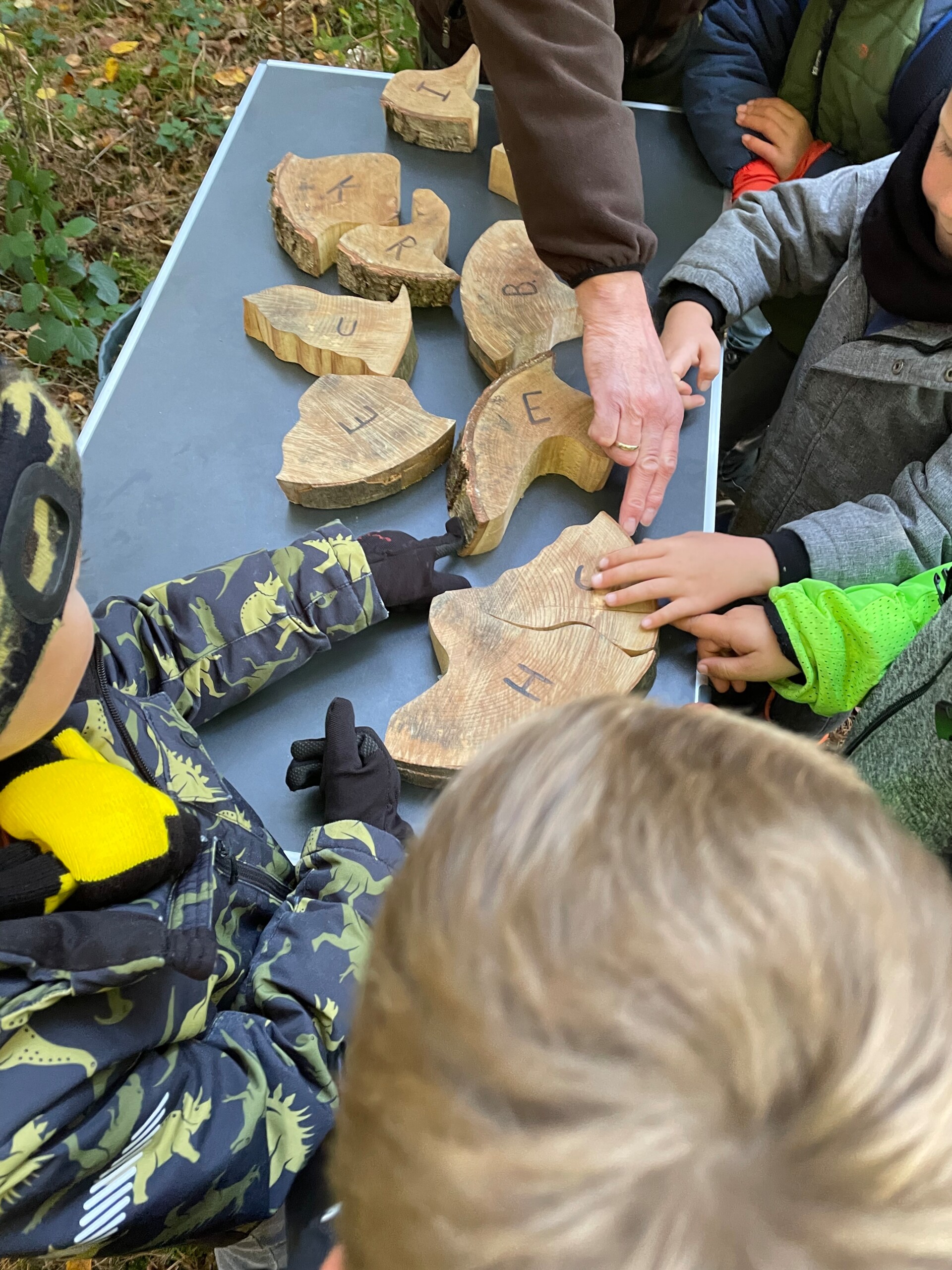 In Kleingruppen von fünf bis sechs Kindern erkundeten die jungen Naturforscher den Wald und absolvierten zehn abwechslungsreiche Stationen rund um das Thema „Naturerlebnis“. Ob beim Zapfenweitwurf, an der Fühlbox, beim Baumscheibenpuzzle oder bei der Flussüberquerung mit Baumscheiben – überall waren Geschick, Wissen und Zusammenarbeit gefragt. Auch wichtige Umweltthemen wie Müll im Wald und seine Folgen wurden spielerisch vermittelt.