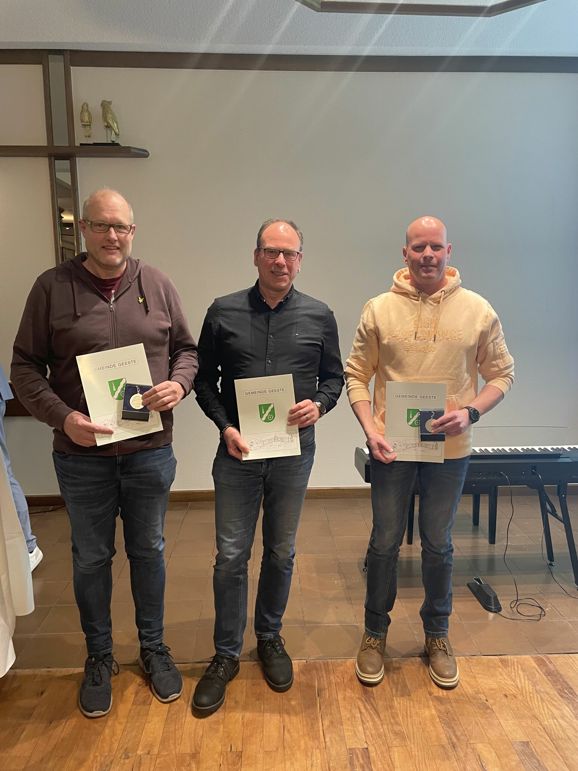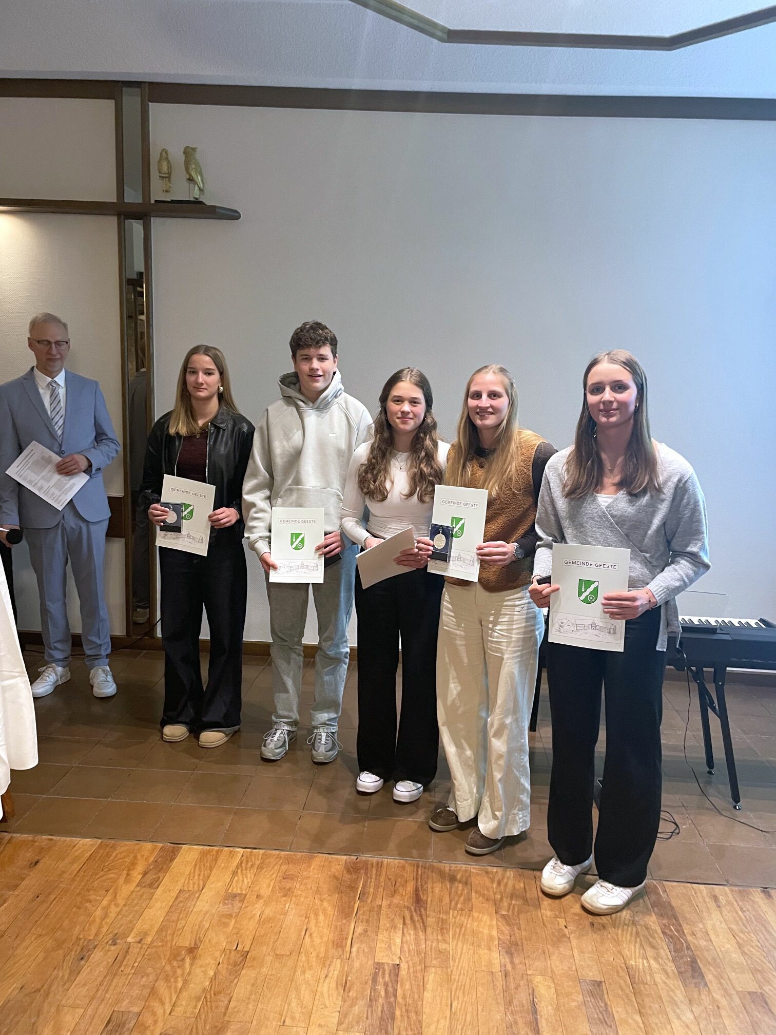 Besonders hervorzuheben ist die Ehrung von Geester Persönlichkeiten, die sich in besonderem Maße für die Gemeinschaft eingesetzt haben. Hierzu gehört Alois Schmitz aus Osterbrock, dessen lebenslange Leidenschaft für den Reitsport mit entsprechendem Engagement beim Reit- und Fahrverein Osterbrock e.V. Hand in Hand geht. Aus dem Ortsteil Groß Hesepe wurde Georg Hermeling als Preisträger vorgeschlagen. Er engagiert sich seit langem beim Schützenverein St. Hubertus Groß Hesepe e.V. und ist u.a. in unterschiedlichsten Tätigkeiten bei der kath. Pfarrgemeinde St. Nikolaus Groß Hesepe aktiv. Georg Vehring aus Geeste war über Jahrzehnte sowohl Rendant der Kirchengemeinde St. Antonius Geeste und ist zudem langjähriger 1. Vorsitzender des gleichnamigen Schützenvereins. Mit Marvin Wilkens aus Dalum wurde ein Vertreter der Jugend für sein ehrenamtliches Wirken bei der KjG – Katholische junge Gemeinde, Dalum, geehrt, u.a. für die Organisation und Begleitung von Jugendzeltlagerfreizeiten.